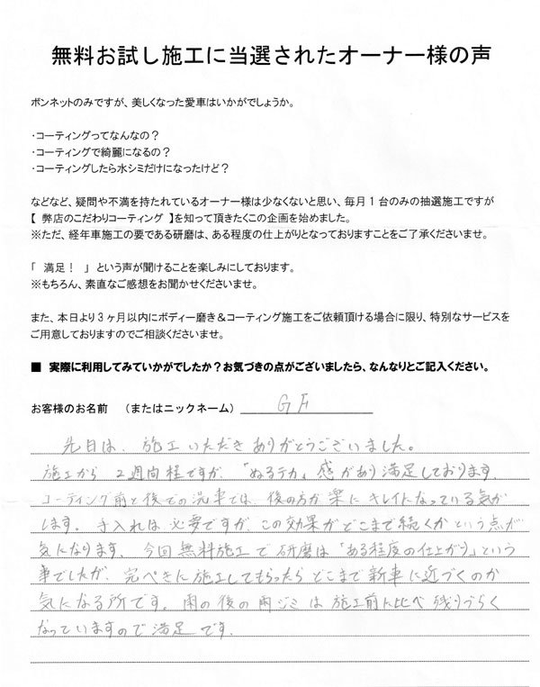 お試し施工ということで、研磨(仕上がり)レベル含め色々と至らない点や